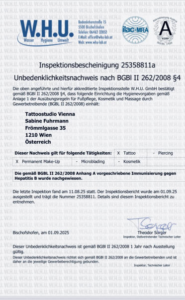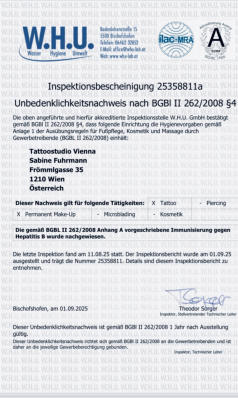 Umfeld der Tätowierung auftreten. In diesem Fall bitte zuerst das Studio kontaktieren, danach ist sofort ein